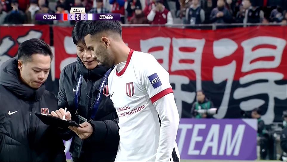第63分钟,首尔FC前场断球三人之间做出精妙配合,突入禁区,势大力沉的劲射,被蹇韬奋力扑出!成都蓉城逃过一劫。随后文宣民、曹永旭登场,首尔FC进一步加强前场的进攻。第74分钟,费利佩利用个人能力,突入禁区挤开防守球员推射破门。但是经过视频裁判的介入,认为费利佩手上有拉拽的犯规动作,因此进球无效!